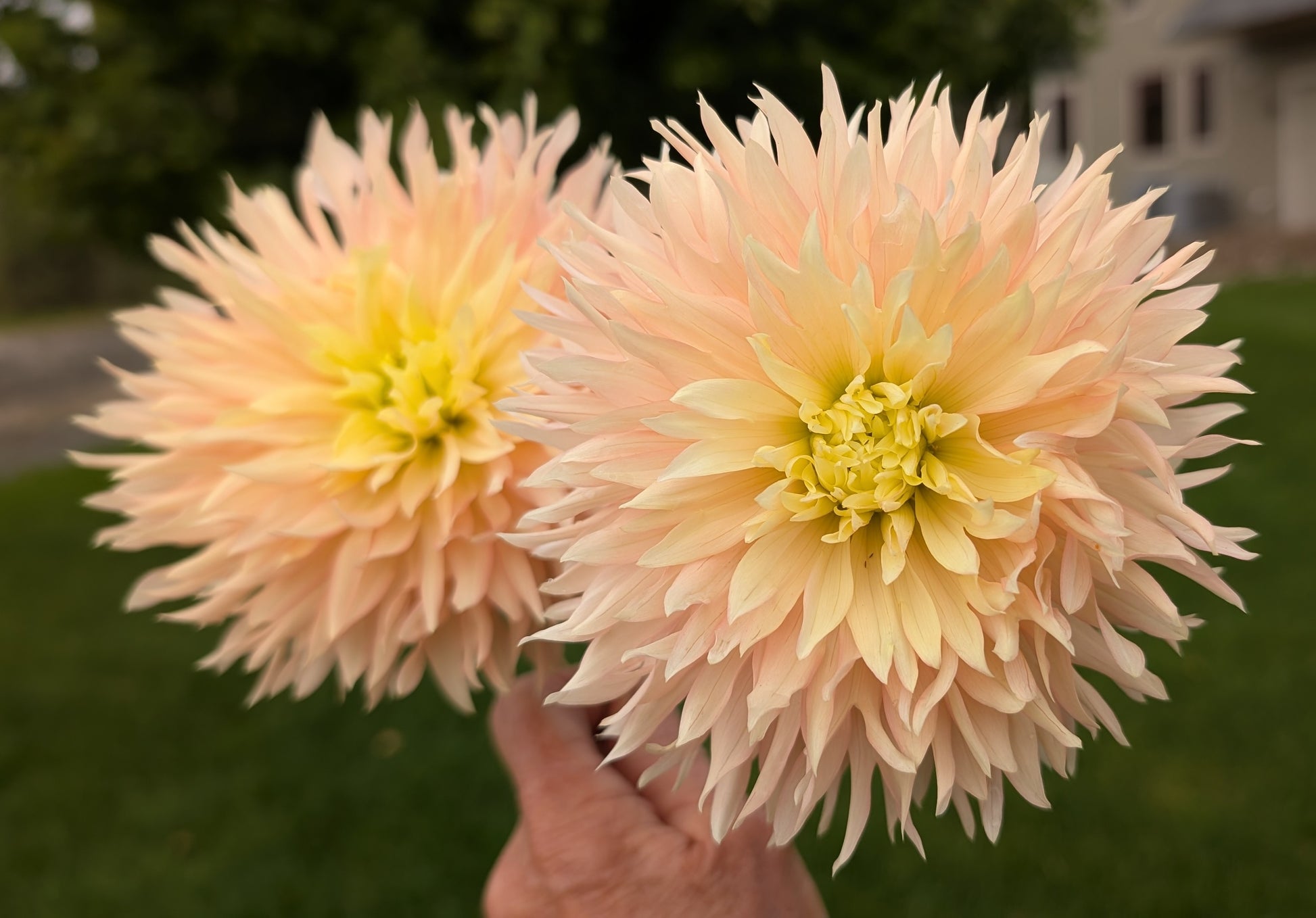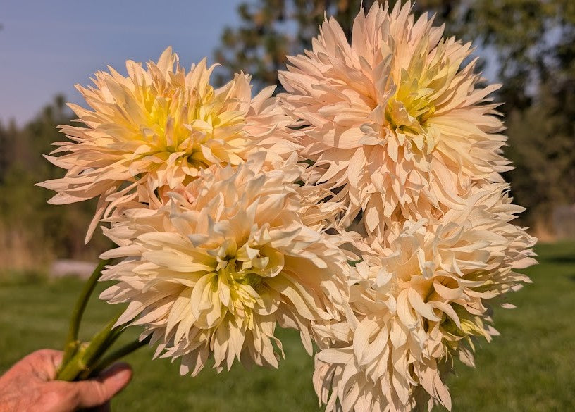 Hapet Champagne is an enchanting dahlia with deeply laciniated petal tips that give it a feathery appearance. This unique dahlia is one of my favorites! Plant height is 48".