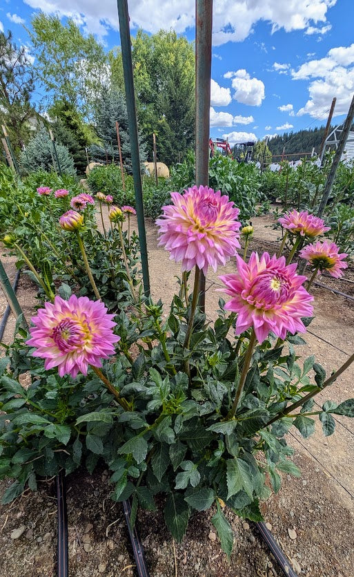 Waterlily-like blooms in vibrant orchid-pink that transition to butter yellow with a dark eye. This is a good cut flower. Plant height is 36".